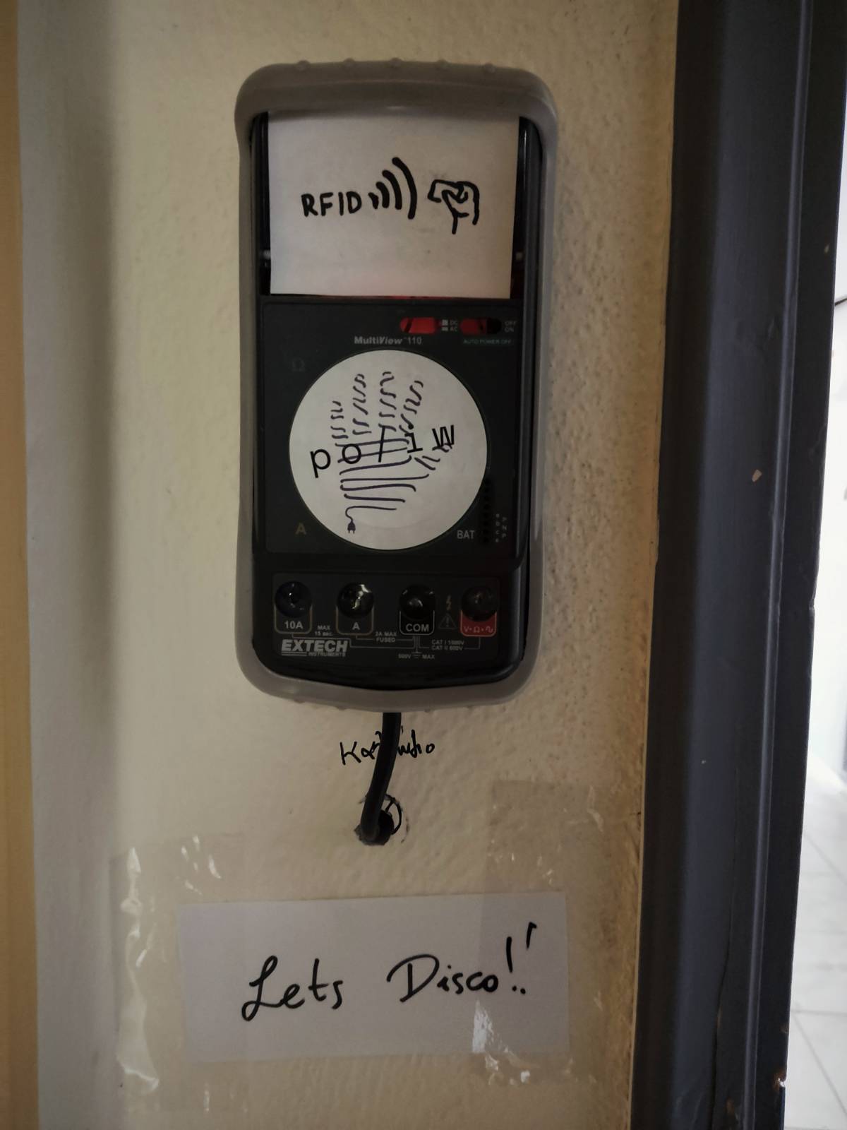 Τα μέλη του εργαστηρίου εισέρχονται με την χρήση καρτών RFID (τύπου Mifare Classic 1K), τα οποία εμπεριέχουν symmetric JWT tokens. Η επαλήθευση των tokens γίνεται offline, ενώ η συσκευή συνδέεται σε UPS. Έτσι, δεν υπάρχει φόβος σε περιπτώσεις διακοπής ρεύματος ή συνδεσημότητας.